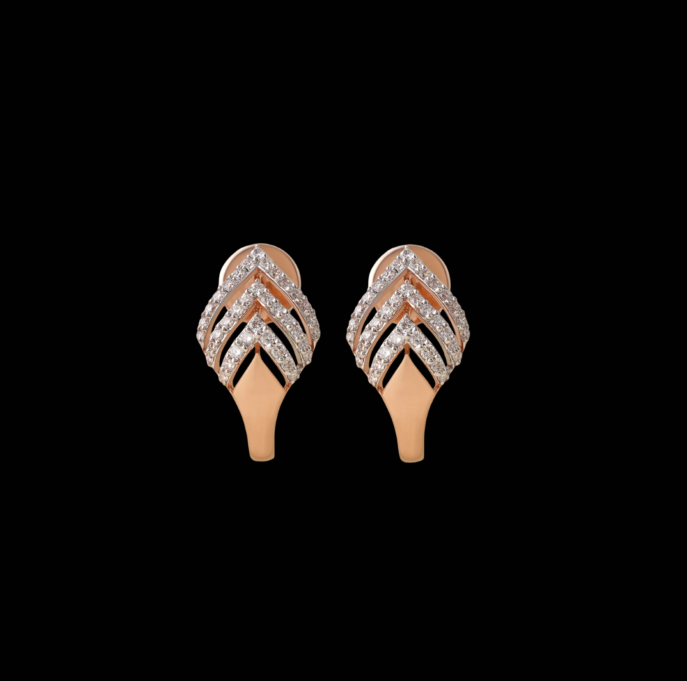 A modern and sophisticated earring design featuring a chevron pattern of diamonds set in rose gold, perfect for making a statement.
