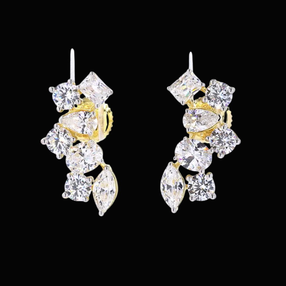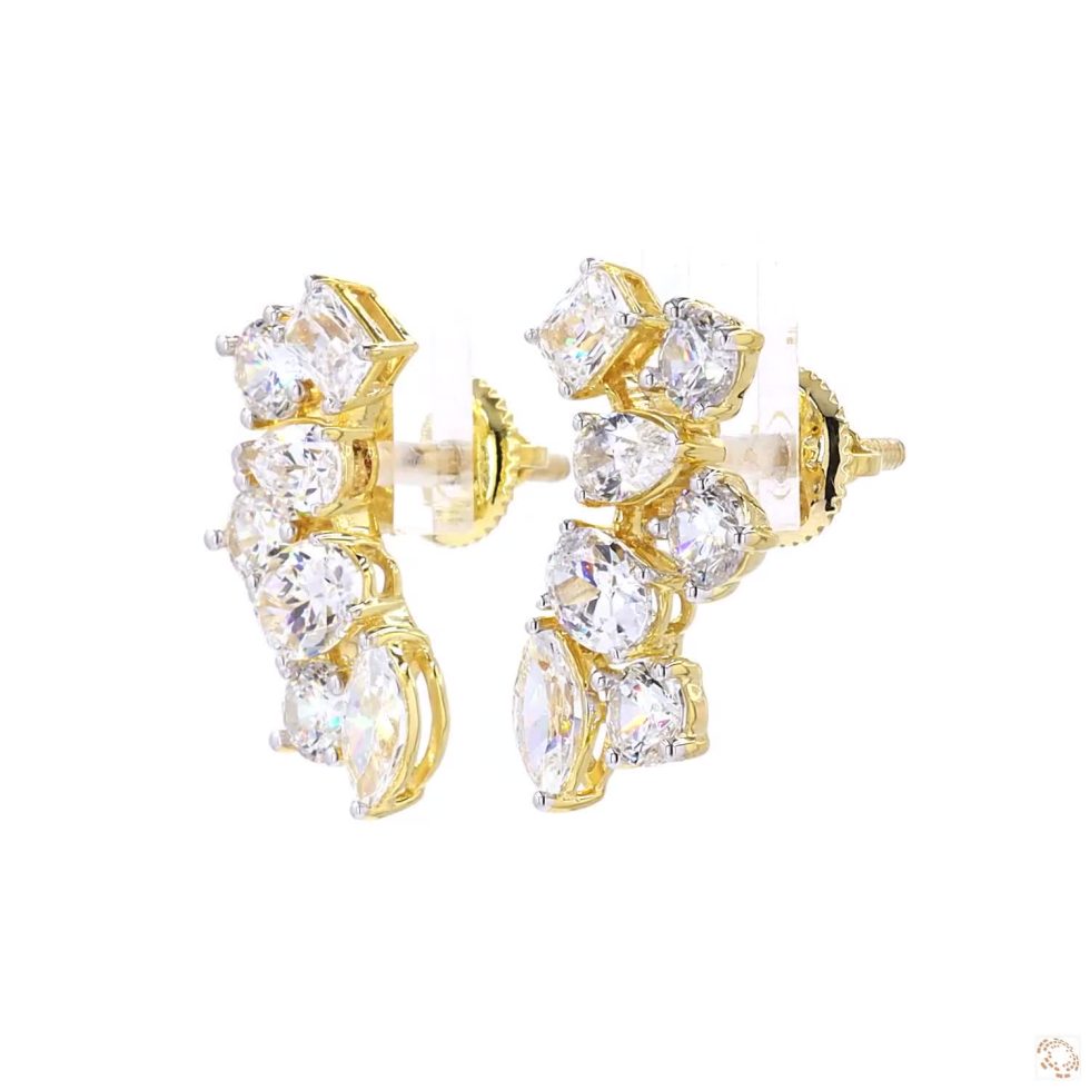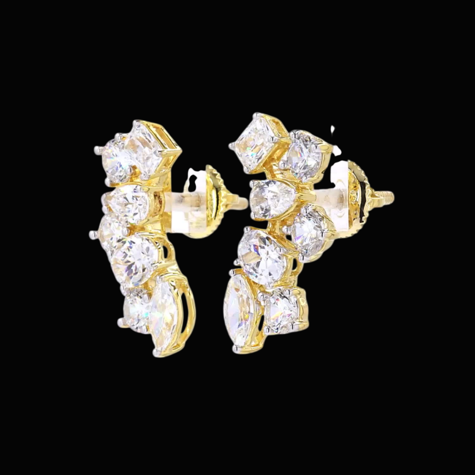 A pair of gold earrings exudes pure elegance, each featuring a single, brilliant diamond as its focal point. Their minimalist design draws attention to the stones’ radiant sparkle, symbolizing timeless beauty and refined sophistication. Crafted in glowing gold, these classic earrings embody enduring style and the perfect harmony of simplicity and luxury.