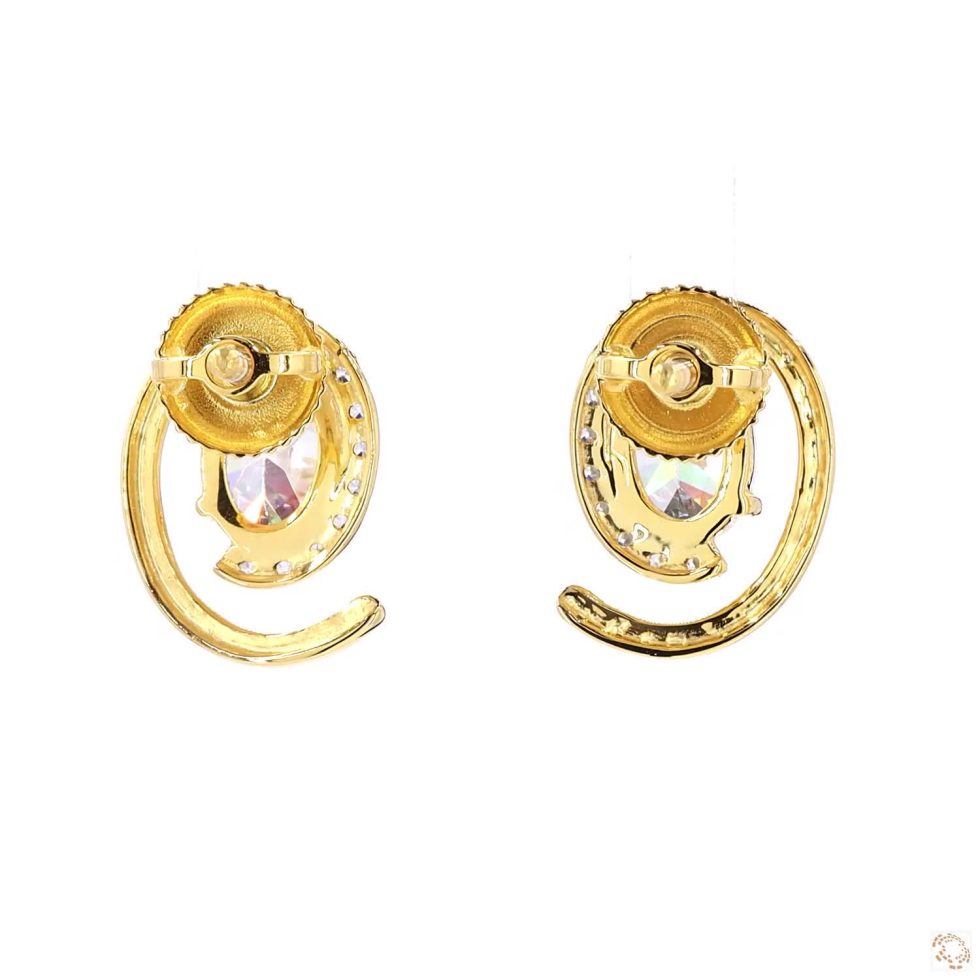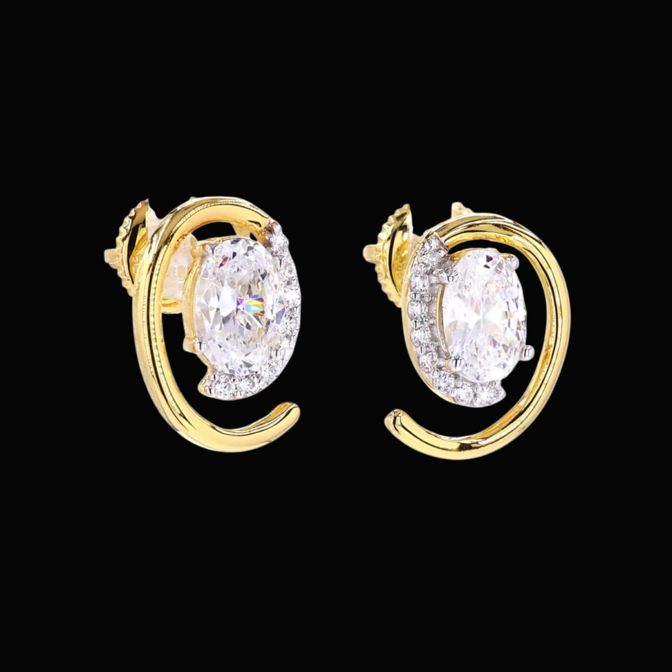 A pair of gold earrings exudes pure elegance, each featuring a single, brilliant diamond as its focal point. Their minimalist design draws attention to the stones’ radiant sparkle, symbolizing timeless beauty and refined sophistication. Crafted in glowing gold, these classic earrings embody enduring style and the perfect harmony of simplicity and luxury.