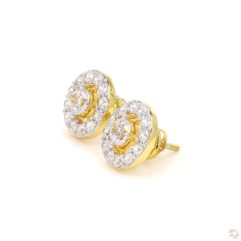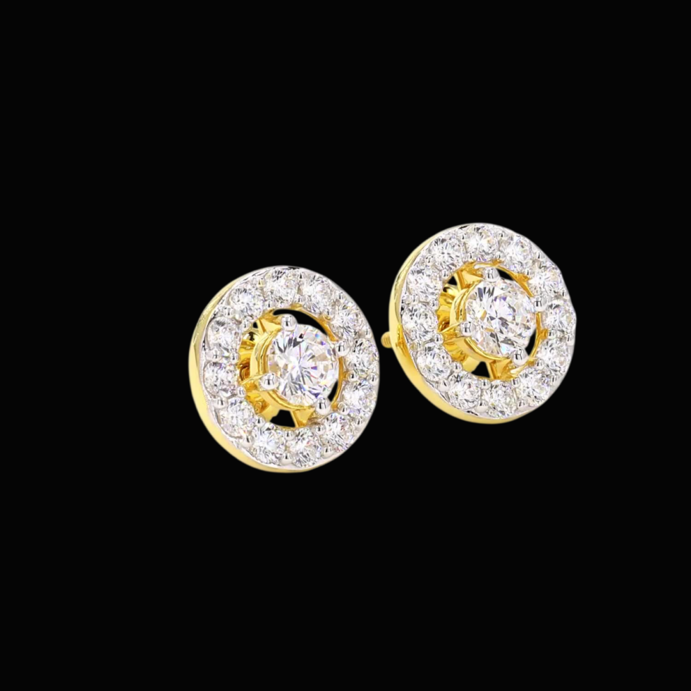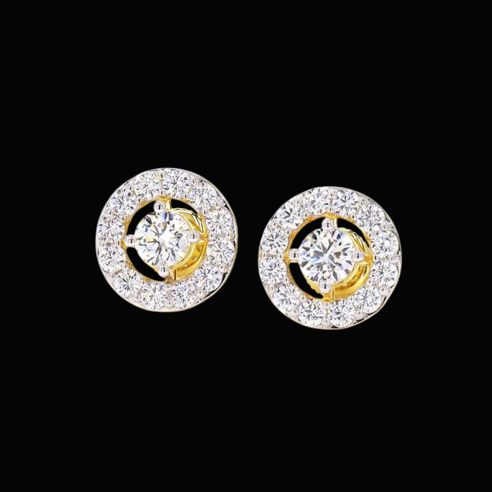 A pair of gold earrings exudes pure elegance, each featuring a single, brilliant diamond as its focal point. Their minimalist design draws attention to the stones’ radiant sparkle, symbolizing timeless beauty and refined sophistication. Crafted in glowing gold, these classic earrings embody enduring style and the perfect harmony of simplicity and luxury.