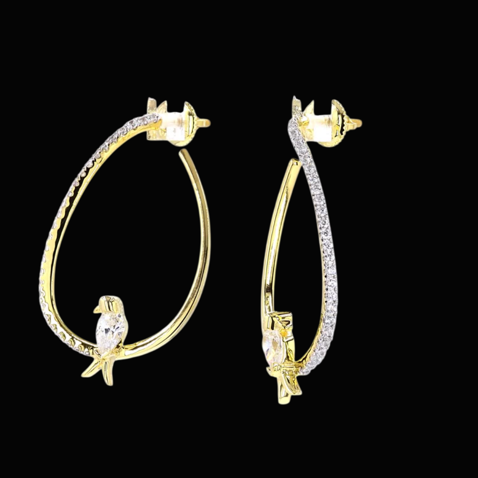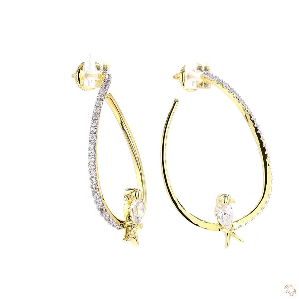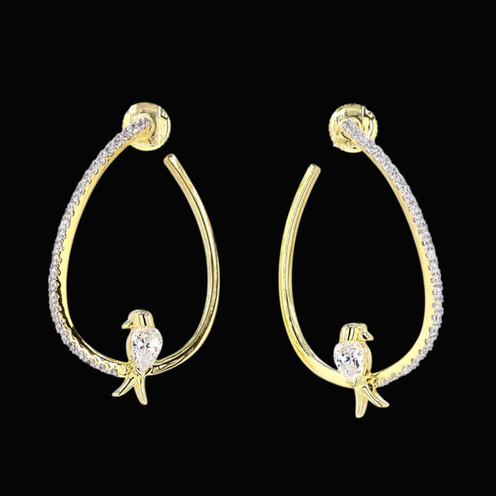 A pair of gold earrings exudes pure elegance, each featuring a single, brilliant diamond as its focal point. Their minimalist design draws attention to the stones’ radiant sparkle, symbolizing timeless beauty and refined sophistication. Crafted in glowing gold, these classic earrings embody enduring style and the perfect harmony of simplicity and luxury.