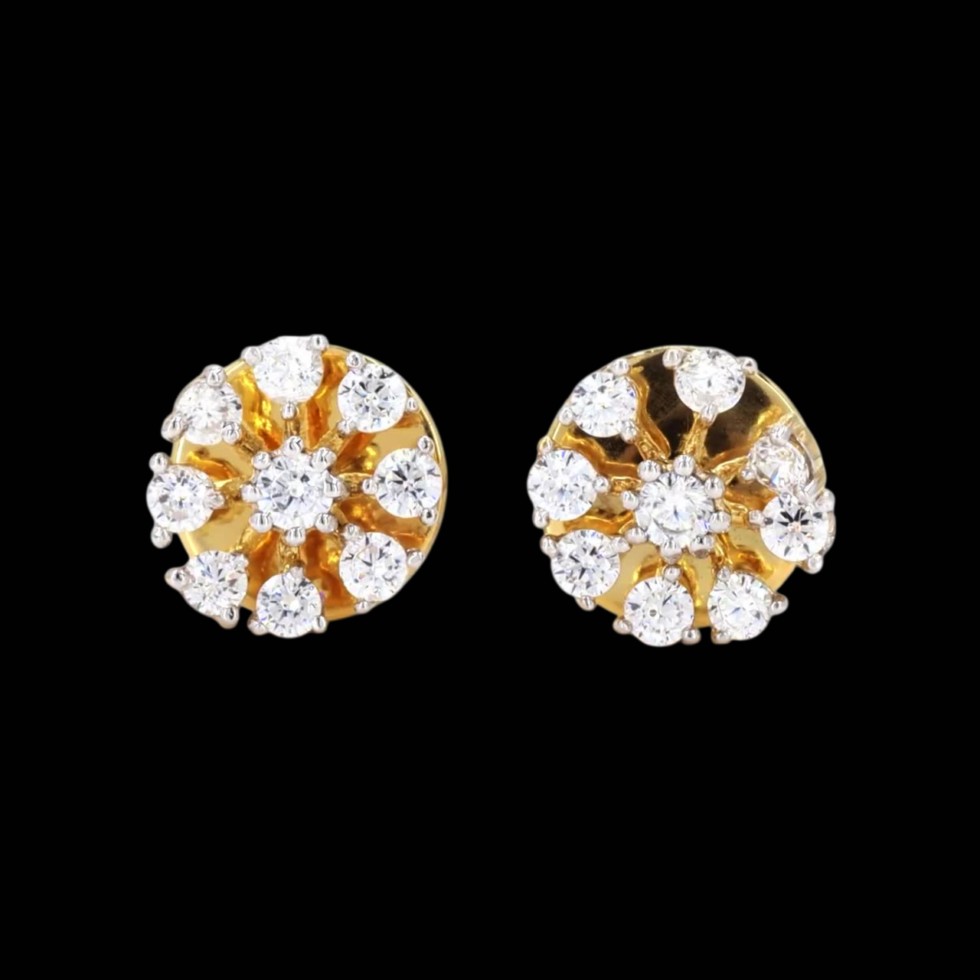 A pair of gold earrings exudes pure elegance, each featuring a single, brilliant diamond as its focal point. Their minimalist design draws attention to the stones’ radiant sparkle, symbolizing timeless beauty and refined sophistication. Crafted in glowing gold, these classic earrings embody enduring style and the perfect harmony of simplicity and luxury.