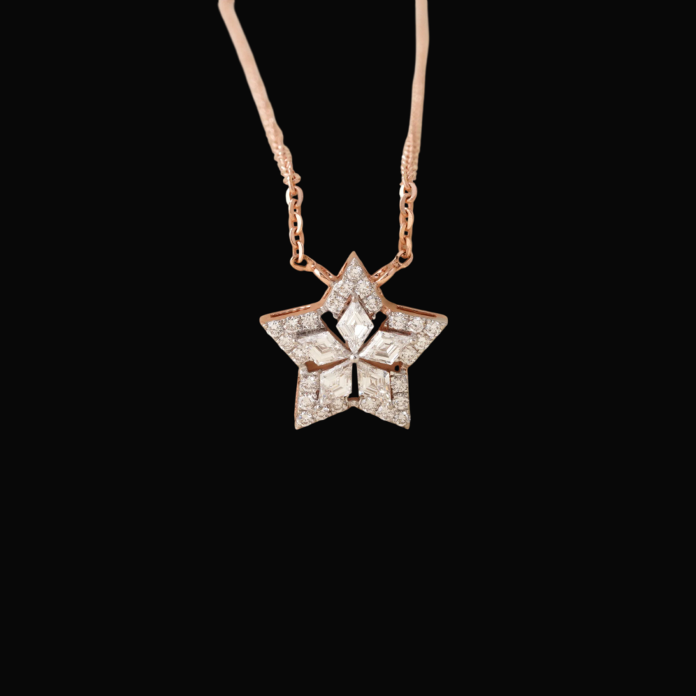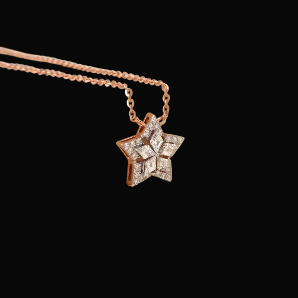 The chain is adorned with a stunning star-shaped pendant, featuring a intricate design composed of multiple diamonds.