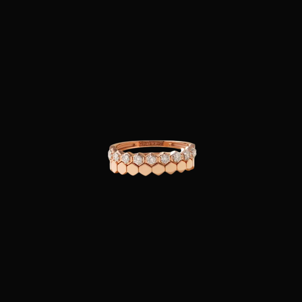 The intricate pattern, crafted from rose gold, is a testament to the art of fine jewelry making. The brilliant diamonds, set in hexagonal settings, sparkle like stars in the night sky, adding an extra layer of luxury and opulence to this already stunning piece.